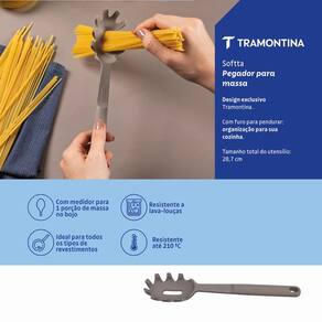 Aprimore o nível da sua cozinha com o Pegador de Massa Softta Tramontina, o item perfeito para quem deseja manuseio delicado dos alimentos e um acabamento de alto padrão. Projetado para cozinheiros domésticos exigentes e chefs, este utensílio de silicone melhora a experiência de servir suas massas. Seu design ergonômico facilita a porção de espaguete ou talharim sem danificá-los. A suavidade do silicone cinza assegura que a superfície das suas panelas não seja riscada, um detalhe crucial para preservar seus antiaderentes.