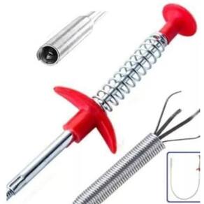 Pegador de objetos ideal para oficinas mecânicas e cozinha, banheiro, ralos para casa em geral. 100% novo e de alta qualidade Limpe facilmente a sujeira no tubo Boa ferramenta de limpeza para sua casa A mola pode dobrar livremente sem distorção, adequado para limpar o tubo de água A maneira rápida e fácil de limpar drenos em movimento lento devido a tufos de cabelo no banheiro. Basta deslizar o produto para baixo do dreno e redondo ele vai obter o entupimento e removê-lo. Uma cabeça projetada especialmente flexível para desobstruir o dreno. Não há necessidade de usar produtos químicos ou tóxicos para limpar o dreno e entupir. Esgotos claros, bloqueios de drenagem do dissipador do gancho da limpeza doméstica, limpeza da tubulação do cabelo. Informações sobre o produto Metal e plástico Tamanho: 90cm