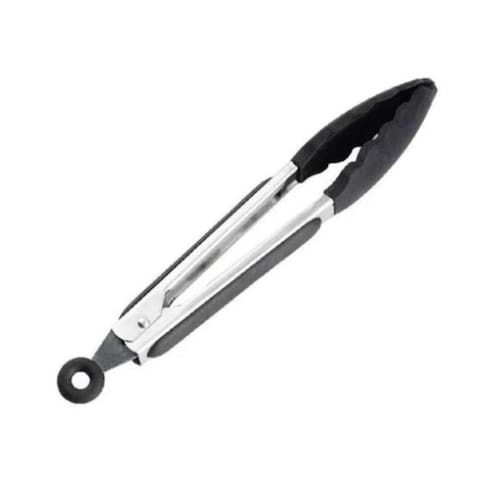 Pegador De Silicone e Inox Para Carne Churrasco Salada Cozinha Pinça - PRETO