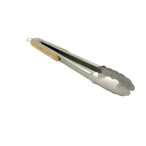 Especificações técnicas: - Material: Aço inoxidável com cabo de bambu - Comprimento: 27 cm - Cor: Prata e marrom - Quantidade: 2 pegadores