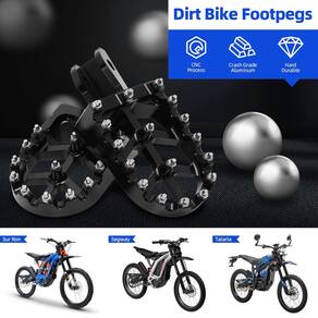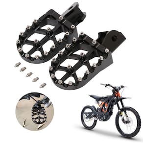 Características: Novo, nunca montado, de alta qualidade Material de alumínio forjado com alta resistência Anodizado duro em preto. Bonito e leve Fácil de instalar Os dentes de aço inoxidável podem ser substituídos, proporcionam excelente controle do pé Especificação: Cor: preto/vermelho como imagens Material: Alumínio Ajuste: Para Sur Ron S/X Para Segway X260 X160 Para Talaria Sting MX3 MX4 Talaria XXX A embalagem inclui: 1 par de pinos de pé como nas imagens Instruções de instalação não incluídas - Ajuste – Este pedal de bicicleta suja serve para Sur Ron S/X Segway X260 X160 Talaria Sting MX3 MX4 Talaria XXX. - Material de liga de alumínio – É feito de liga de alumínio T7 7075 através de CNC. É uma das ligas de maior resistência, que não enferruja nem corrói e não é fácil de quebrar e usar. A estrutura exclusiva da ponte em "Y" aumenta a força e a estabilidade do pedal, tornando-o o pedal de motocicleta mais forte do mercado. - MAIS LARGO E MAIOR - É mais largo e maior do que os pedais autênticos da bicicleta para proporcionar melhor atrito e controle, permitindo que seus pés permaneçam no lugar sem deslizar; a plataforma mais ampla dispersa o impacto e reduz a pressão em seus pés. - 17 dentes – Existem 17 dentes nos pedais, o que pode aumentar muito o atrito, para que você não escorregue nas estradas chuvosas e lamacentas, e você pode andar com confiança em qualquer situação. Os dentes também podem ser substituídos. - Superfície anodizada – As cores brilhantes e a superfície anodizada podem decorar sua motocicleta muito bem, e é sua primeira escolha para atualizar ou substituir pedais de bicicleta suja.
