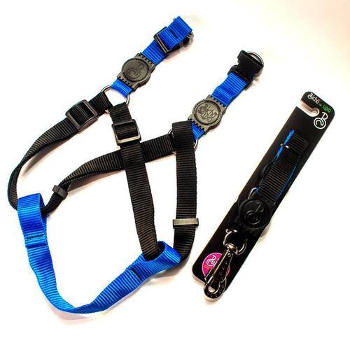 Indicada para Cachorros de grande porte, de qualquer idade Tamanho do tórax: GG - de 40cm até 70cm Disponível apenas na cor azul/preta Guia: 1m Material: Poliester, metal, nylon, borracha. Marca: Não Informado