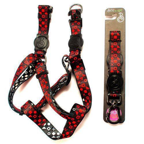 Indicada para Cachorros de grande e médio porte, de qualquer idade Tamanho do tórax: G - de 35cm até 61 cm Disponível apenas na estampa dupla face Preta/Vermelha - Preta/Branca Guia: 1m Material: Poliester, metal, nylon, borracha. Marca: Não Informado