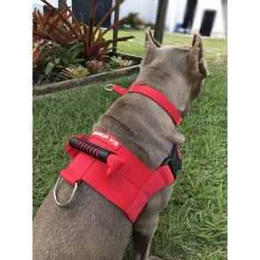 - Feito com fita muito resistente com 5cm de largura, espessa e confortável. - Muito fácil de colocar e retirar de seu cão. - Muito seguro: As presilhas de nylon injetado possuem travas de segurança e suportam até 90 quilos de força só abrem apertando as 3 travas . - Modelo ao pela policia nos EUA e Canadá, dando ao seu dog aparência e imponente. - Ideal para cães de porte médio e grande. - Por ser regulável na parte frontal e traseira se ajusta perfeitamente em seu cão. - Indicado para Cães entre 40 e 58 quilos - Circunferência de tórax mínima 78 e máxima 115 cm. - Nossos produtos são feitos com costuras reforçadas e bem acabadas. Raças ideais: Rottweiler, pastor alemão, american bully, cane corso, dogo argentino, bernese mountain dog, bulldog americano, dog alemão, kuvatz, entre outras raças gigantes e fortes. Obs: O colar no percoço do cão é meramente ilustrativo e não acompanha o peitoral. Canadá k9 acessórios tem seus produtos testado por profissional de adestramento Canadense no Brasil. Marca: Não Informado