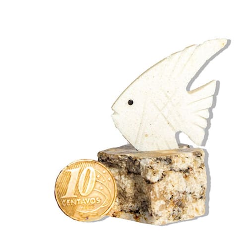 A arte da escultura em dolomita se expressa de forma sublime na figura de um peixe, transmitindo a beleza e a harmonia do mundo natural. A escultura de um peixe em dolomita é uma forma de arte popular em muitas culturas e pode ser encontrada em várias partes do mundo, pode ser utilizada como decoração em uma variedade de ambientes, e também pode ser uma boa opção de presente para alguém que aprecia a arte e a beleza da natureza.