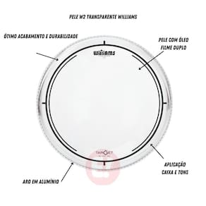 Pele W2 Target Clear Filme Duplo Hidráulica Williams 2 filmes com espessura de 7mil cada milésimo de polegada Possui óleo entre as peles, no formato de pele hidráulica Sonoridade grave, bem definida, sustain médio e som balanceado Ótima durabilidade Excelente Custo e Beneficio à Evans EC2 Clear / Remo Pinstripe Clear Williams é uma marca brasileira de peles importadas Marca: Williams Modelo: W2 Target Clear Filme Duplo Somos a E Musical loja de instrumentos e acessórios musicais. Contamos com uma vasta gama de produtos novos e seminovos revisados, uma equipe de vendas especializada que trabalha desde 2009 no mercado da música. Estamos sempre à disposição para atender suas necessidades e exigências como músico Jacareí - SP Marca: Não Informado