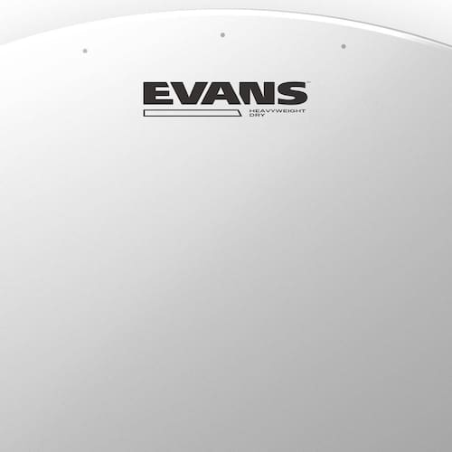 A pele batedeira para caixa Evans Heavyweight é a mais grossa, com filmes de maior durabilidade em toda a linha Evans. Projetada para "pegadas" pesadas, a Heavyweight possui 23mil de espessura no centro da pele. A nova versão DRY possui pequenos orifícios de ventilação ao redor da borda, que eliminam os harmônicos e compactam o som.?