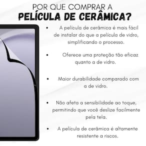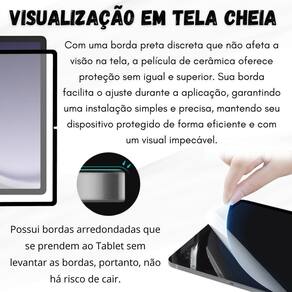 Película cerâmica fosca para tablet samsung a9+ 11 x210 x216 Cor: fosca proteja a tela do seu tablet com a incrível película de cerâmica, a solução definitiva para manter seu dispositivo impecável. ------------------ Atenção ------------------ Compatível com: Tab samsung a9+ 11 x210 x216 Modo de uso: 1- limpe a tela do seu tablet, após esta limpa remova uma parte da película protetora e centralize a película de cerâmica no tablet. Com a ajuda de um cartão, sem fazer força deslize para firmar por todo comprimento. Caso apareçam bolhas, empurre novamente em direção às bordas do tablet. caso tenha dificuldade você pode nos enviar mensagem no chat da compra Que iremos enviar um vídeo auxiliando na aplicação. ------------------ ------------------ a película de cerâmica afeta a sensibilidade ao toque R: não, a película é projetada para não interferir na sensibilidade ao toque dos dispositivos. Elas possuem uma camada ultrafina que mantém a capacidade de resposta da tela intacta, permitindo que você utilize o dispositivo normalmente sem problemas de perda de sensibilidade ao toque. por que devo escolher uma película de cerâmica para o meu tablet R: a película de cerâmica oferece uma proteção avançada contra arranhões, mantendo a tela do seu tablet livre de danos e preservando sua clareza de imagem. como a película de cerâmica contribui para a longevidade do tablet R: graças à sua resistência avançada a arranhões e impactos leves, a película de cerâmica ajuda a proteger a tela do tablet, prolongando sua vida útil e evitando danos indesejados. a película de cerâmica é compatível com o uso de canetas stylus posso usar a capa com película A capa não levanta a película R: sim, é possível usar a capa com a película. A capa possui recortes precisos ao qual não se levanta a película. ------------------ Especificações ------------------ Material: cerâmica Compatível com: Tab samsung a9+ 11 x210 x216 ------------------ Conteúdo ------------------ 1x película de cerâmica 1x kit limpeza. Anúncio referente a película Tablet não incluso - qualidade garantida. - atendimento qualificado. - enviamos para todo o brasil. - compra garantida. - despachamos em até 1 dia útil após confirmação do pagamento Garantimos a devolução por arrependimento em até 7 dias, após o recebimento e de 15 dias contra defeitos de fabricação. Homologação Anatel: 000521203111