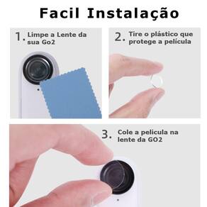 As películas paraInsta360 GO 2 possuem bordas arredondadas que combinam bem com alente. A instalação do produto é bastante simples, e acompanha todos osacessórios necessários para auxiliar na colocação. Bastaalinhá-la corretamentesobre a lente da GO 2 epressionar levemente, para que apelícula seja fixada lmente na lente.