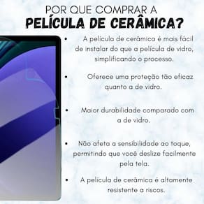 por que devo escolher uma película de cerâmica para o meu tablet R: a película de cerâmica oferece uma proteção avançada contra arranhões, mantendo a tela do seu tablet livre de danos e preservando sua clareza de imagem. como a película de cerâmica contribui para a longevidade do tablet R: graças à sua resistência avançada a arranhões e impactos leves, a película de cerâmica ajuda a proteger a tela do tablet, prolongando sua vida útil e evitando danos indesejados.