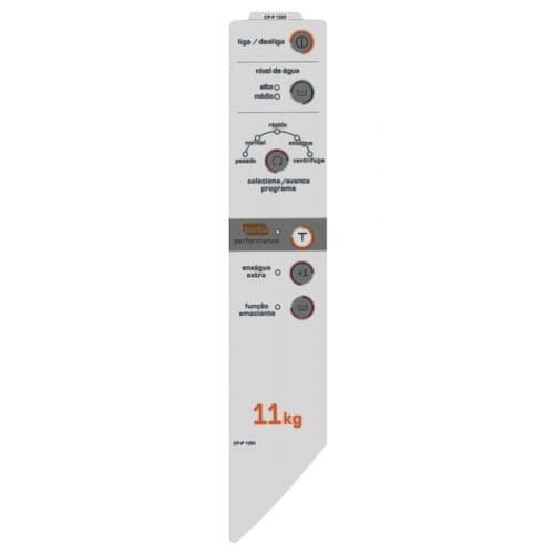 O painel decorativo para máquina de lavar possui todas as funções de lavagem e funciona como um guia, ilustrando o passo a passo da lavagem. Contém todos os botões relacionados aos respectivos ciclos.