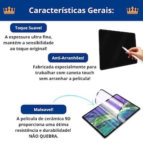 Pelicula para galaxy tab s9 fe plus 12.4 - ceramica fosca Pelicula protetora de tela: ceramica Qualidade e compra garantida Atendimento qualificado Enviamos seu pedido em até 1 dia útil após confirmação do pagamento