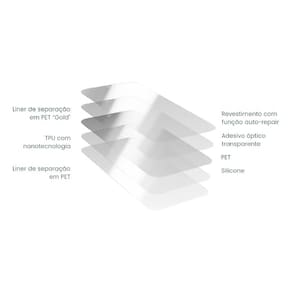 Poliuretano Termoplástico;Polímero Termoplástico;Camadas auxiliares para absorção de impactos;Ela foi feita especialmente para telas planas, sendo que em aparelhos com algum tipo de curvatura, possui um recuo nas bordas para melhor aderência.