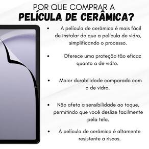Película proteção cerâmica para tablet samsung a9+ 11 x216 Cor: fosca proteja a tela do seu tablet com a incrível película de cerâmica, a solução definitiva para manter seu dispositivo impecável. ------------------ Atenção ------------------ Compatível com: Tab samsung a9+ 11 x210 x216 Modo de uso: 1- limpe a tela do seu tablet, após esta limpa remova uma parte da película protetora e centralize a película de cerâmica no tablet. Com a ajuda de um cartão, sem fazer força deslize para firmar por todo comprimento. Caso apareçam bolhas, empurre novamente em direção às bordas do tablet. caso tenha dificuldade você pode nos enviar mensagem no chat da compra Que iremos enviar um vídeo auxiliando na aplicação. ------------------ ------------------ a película de cerâmica afeta a sensibilidade ao toque R: não, a película é projetada para não interferir na sensibilidade ao toque dos dispositivos. Elas possuem uma camada ultrafina que mantém a capacidade de resposta da tela intacta, permitindo que você utilize o dispositivo normalmente sem problemas de perda de sensibilidade ao toque. por que devo escolher uma película de cerâmica para o meu tablet R: a película de cerâmica oferece uma proteção avançada contra arranhões, mantendo a tela do seu tablet livre de danos e preservando sua clareza de imagem. como a película de cerâmica contribui para a longevidade do tablet R: graças à sua resistência avançada a arranhões e impactos leves, a película de cerâmica ajuda a proteger a tela do tablet, prolongando sua vida útil e evitando danos indesejados. a película de cerâmica é compatível com o uso de canetas stylus posso usar a capa com película A capa não levanta a película R: sim, é possível usar a capa com a película. A capa possui recortes precisos ao qual não se levanta a película. ------------------ Especificações ------------------ Material: cerâmica Compatível com: Tab samsung a9+ 11 x210 x216 ------------------ Conteúdo ------------------ 1x película de cerâmica 1x kit limpeza. Anúncio referente a película Tablet não incluso - qualidade garantida. - atendimento qualificado. - enviamos para todo o brasil. - compra garantida. - despachamos em até 1 dia útil após confirmação do pagamento Garantimos a devolução por arrependimento em até 7 dias, após o recebimento e de 15 dias contra defeitos de fabricação. Homologação Anatel: 000521203111 Marca: Não Informado Ean: 7794745806616