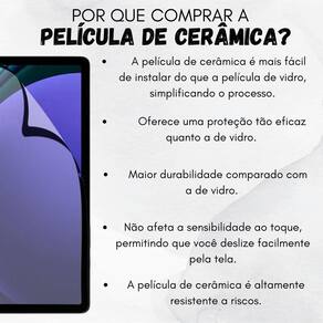 Película protetora fosca compatível com tab samsung s9+ x816 Cor: fosca proteja a tela do seu tablet com a incrível película de cerâmica, a solução definitiva para manter seu dispositivo impecável. ------------------ Atenção ------------------ Compatível com: Tab samsung s9 plus 12.4 x810 x816 Tab samsung s9 plus 12.4 x810 x816 Modo de uso: 1- limpe a tela do seu tablet, após esta limpa remova uma parte da película protetora e centralize a película de cerâmica no tablet. Com a ajuda de um cartão, sem fazer força deslize para firmar por todo comprimento. Caso apareçam bolhas, empurre novamente em direção às bordas do tablet. caso tenha dificuldade você pode nos enviar mensagem no chat da compra Que iremos enviar um vídeo auxiliando na aplicação. ------------------ ------------------ a película de cerâmica afeta a sensibilidade ao toque R: não, a película é projetada para não interferir na sensibilidade ao toque dos dispositivos. Elas possuem uma camada ultrafina que mantém a capacidade de resposta da tela intacta, permitindo que você utilize o dispositivo normalmente sem problemas de perda de sensibilidade ao toque. por que devo escolher uma película de cerâmica para o meu tablet R: a película de cerâmica oferece uma proteção avançada contra arranhões, mantendo a tela do seu tablet livre de danos e preservando sua clareza de imagem. como a película de cerâmica contribui para a longevidade do tablet R: graças à sua resistência avançada a arranhões e impactos leves, a película de cerâmica ajuda a proteger a tela do tablet, prolongando sua vida útil e evitando danos indesejados. a película de cerâmica é compatível com o uso de canetas stylus posso usar a capa com película A capa não levanta a película R: sim, é possível usar a capa com a película. A capa possui recortes precisos ao qual não se levanta a película. ------------------ Especificações ------------------ Material: cerâmica Compatível com: tab samsung s9 plus 12.4 x810 x816 ------------------ Conteúdo ------------------ 1x película de cerâmica 1x kit limpeza. Anúncio referente a película Tablet não incluso - qualidade garantida. - atendimento qualificado. - enviamos para todo o brasil. - compra garantida. - despachamos em até 1 dia útil após confirmação do pagamento Garantimos a devolução por arrependimento em até 7 dias, após o recebimento e de 15 dias contra defeitos de fabricação. Homologação Anatel: 000521203111 Marca: Não Informado