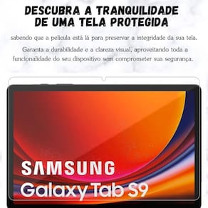 Película vidro temperado para samsung galaxy tab s9 11 2023 cor: transparente a película é um item muito importante a se usar no seu dispositivo, pois a película é responsável por proteger o seu aparelho de possíveis danos como riscos, quedas, além de ser altamente resistente. A película é elaborada de vidro temperado, tem a sua transparência totalmente cristalina, não perde sensibilidade ao toque, fixação por estática, sendo super fácil de aplicar e remove-la, sem afetar a tela do dispositivo. É extremamente segura. Caso a película seja quebrada, as partículas formadas não são afiadas e ficam aderidas à camada adesiva de silicone, tornando-o muito mais seguro que as outras películas. --------------- atenção --------------- compatível com galaxy tab s9 11 polegadas 2023 . Modo de uso: 1- a instalação é super fácil, basta alinhar a película com a tela do tablet, que deverá ser previamente limpa, enviaremos um kit de limpeza, e dar uma pequena pressão no centro da película para que a adesão seja completa e sem bolhas. Caso tenha dificuldade você pode nos enviar mensagem no chat da compra que iremos enviar um video auxiliando na aplicação. ---------------------------------------- ---------------------------------------- é compatível com o samsung tab s9 11 polegadas 2023 r: sim. A película é específica para esse modelo e servirá perfeitamente. É compatível com o samsung tab s9 ultra / tab s9 plus 2023 r: não. A película não é compatível com esse modelo. Posso usar a capa com película a capa não levanta a película r: sim, é possível usar a capa com a película. A capa possui recortes precisos ao qual não levanta a película. -------------------- especificações: -------------------- material: vidro temperado. Peso: 15g. Compatível com samsung tab s9 11 2023 / s8 11 x706 x700 2022 / tab s7 11 t870 t875 2020 . Contéudo: 1x película vidro temperado. 1x limpa telas. Atenção: aanúncio referente somente a película tablet não incluso