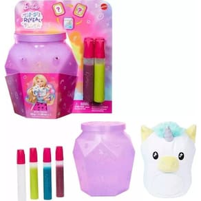 As crianças podem personalizar a sua própria pelúcia com a coleção Barbie Tie-Dye.Cada kit contém 3 cápsulas coloridas e uma pelúcia misteriosa da Babie dentro de uma caixa especial que é revelada em quatro etapas fáceis: Enxaguar com água, inserir as cápsulas nos orifícios de câmera, expremer o excesso de tinta pelo orifício de drenagem e, a seguir, remover e revelar a pelúcia.Este animal fofinho é perfeito para abraçar.E os jovens estilistas podem levá-lo e repitir a operação indefinidamente.