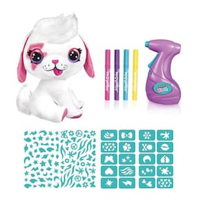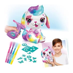 Cachorrinho Puppy para pintar Airbrush, é uma pelúcia fofinha e super macia. As crianças podem criar sua própria pelúcia multicolorida com aerógrafos, marcadores e moldes. Você pode soltar sua imaginação e colorir, desenhar e misturar as cores. É muito fácil de utilizar e o resultado é incrível. E o mais legal, para brincar novamente, basta lavar e recomeçar do zero. Além disso, quando terminar as tintas da canetinha, você pode usar as escolares a base de água e que tenha a mesma espessura.