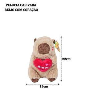 Encantadora e cheia de ternura, essa pelúcia de capivara conquista à primeira vista! Com um desenho de boquinha no rosto, que dá ainda mais personalidade ao seu jeitinho calmo e simpático, ela segura entre as patinhas um coração com a palavra "Amor" – perfeito para expressar carinho de forma divertida e fofa.