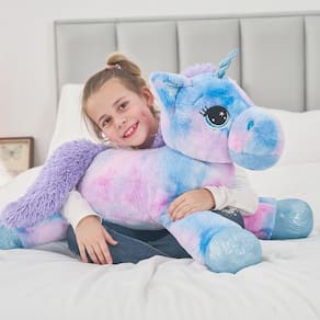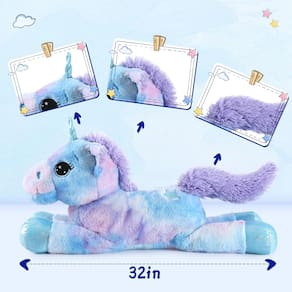 Bem-vindo à família Tezituor. A Tezituor sempre se comprometeu a criar brinquedos de alta qualidade com alto desempenho de custo. Acredite, isso proporcionará a você a experiência de compra mais confortável. Autoapresentação: Oi, meu nome é Ella e eu sou um unicórnio muito fofo. Eu tenho um corpo macio e pêlo roxo arco-íris. Tenho 32 polegadas de comprimento. É por esse motivo que quando você me abraçar, você se sentirá seguro. E eu posso fazer muitas coisas com você como um amigo, como assistir TV, dormir, ler, estudar, etc. Leve-me para casa, eu posso dissipar toda a sua solidão e infelicidade. Se você me der para seus amigos ou familiares, acredito que eles também sentirão o amor de você. Como manter: Ao receber este pacote, você pode acariciá-lo suavemente para que se estique. Você também pode colocá-lo ao sol por alguns dias, o recheio interno se estenderá e fará com que todo o brinquedo de pelúcia pareça bem cheio. Ótimos presentes: não há nada como um bicho de pelúcia para mostrar amor por seus amantes. Quando você vê como sua família fica feliz quando a recebe, você sabe que fez a escolha certa. Por ter uma pelúcia macia, quando você a abraça, ficará muito confortável e satisfeita. - VOCÊ RECEBERÁ: Um amigo unicórnio rosa arco-íris supermacio e fofinho de 32 polegadas. - Design maravilhoso: macio e fofo, com corpo roxo arco-íris, membros azuis e cauda roxa fofa. - Tamanho adequado: este tamanho é adequado para crianças com mais de 3 anos de idade. Você pode usá-lo como travesseiro na cabeceira da cama ou como enfeite no quarto das crianças. - Ótimos presentes: presentes ideais para crianças, como aniversários e vários feriados. - Companheiro de brincadeira perfeito: nossos queridos amigos podem estar com as crianças quando elas se sentem sozinhas e deprimidas, e também podem sentir suas emoções felizes.