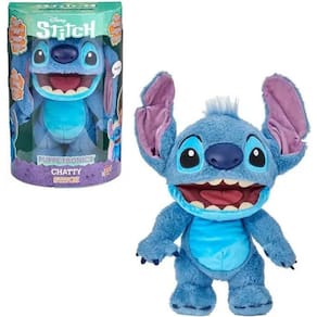 A pelúcia Chatty Stitch fala mais de 50 frases e sons em sua voz alienígena Tantalog, além de ter boca móvel, cabeça giratória, orelhas articuladas e sensores de toque na cabeça e no nariz. A tecnologia de sincronização labial permite que ele fale e se mova de maneira natural, tornando a brincadeira ainda mais envolvente.