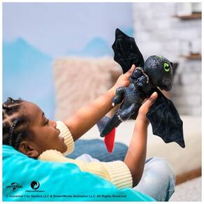 Prepare-se para voar com o Toothless! Esta inovadora pelúcia mostra o icônico dragão do filme Como Treinar o Seu Dragão com detalhes precisos, como pelúcia preta macia com escamas brilhantes, garras de feltro e olhos bordados em verde vivo. Toothless está pronto para decolar com suas grandes asas aveludadas, que alcançam 40,64 centímetros de largura, permitindo planar e te transportar para a Ilha de Berk! Basta encaixar dois dedos sob suas garras dianteiras, puxar para trás e soltar para Toothless voar pelo ar! Suas asas macias se curvam para dentro com um estalo para dar um abraço quando é hora de aconchegar. Seja para um aniversário, feriado ou qualquer celebração, este adorável dragão de pelúcia é um presente impressionante para fãs de Como Treinar o Seu Dragão e amantes de filmes familiares. Explore a coleção oficial de brinquedos para idades de 5 a 7 anos, pelúcias de dragões, figuras de ação Battle Dragons, brinquedos surpresa, brinquedos RC voadores Toothless, jogos de tabuleiro, conjuntos de figuras de brinquedo, figuras de vikings e muito mais. Cada item vendido separadamente.