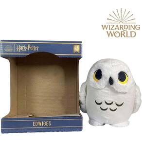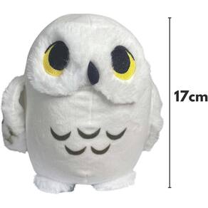 Trata-se de uma pelúcia da Edwiges, a fiel coruja branca de Harry Potter, com aproximadamente 17 centímetros de altura. A pelúcia é confeccionada com tecido aveludado e macio, proporcionando uma textura suave e agradável ao toque.