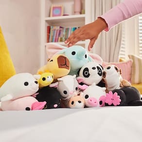 Além do efeito , os personagens da linha Hug-A-Lumps Baby encantam com seus olhinhos meigos, cores suaves e design acolhedor. São 11 modelos adoráveis para conhecer, como a Topeira Jeremy, a Gata Luna, a Elefanta Eliza, o Ornitorrinco Perry, a Vaca Clover, a Girafa Gigi, a Capivara Connie, a Foca Sandy, a Cabra Graham, o Canguru Jess e a Preguiça Sydney, cada um com sua personalidade única e charme especial. Com visual encantador e sensação tátil envolvente, essa pelúcia é muito mais que um brinquedo é uma dose diária de afeto.