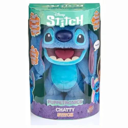 Ao combinar todas essas funções; Chatty Stitch fala com sua voz alienígena de Tantalog, tem uma boca que se move, cabeça que vira, orelhas caídas e até sensores de toque na cabeça e no nariz!