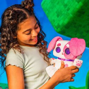 Seu corpo supermacio, as orelhinhas adoraveis e o design inspirado em pixel art tornam essa pelucia unica e encantadora. Ideal para criancas que adoram brinquedos interativos, a Pixel Rosa reage a gestos, sons e carinhos, transformando cada momento em uma nova descoberta.