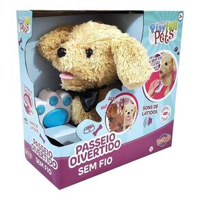 Pelúcia Interativa - PlayFull Pets - Passeio Divertido - Cachorro - Toyng: Os pets mais fofinhos e divertidos do momento estão prontos para fazer a alegria das crianças. A coleção PlayFull Pets apresenta uma série de animais realistas com movimentos, sons e acessórios incríveis para divertir as crianças apaixonadas por pets. Agora os pequenos e pequenas podem levar seu próprio animalzinho para passear. O Cachorrinho Passeio Divertido Toyng tem textura macia, faz sons de latidos, caminha e vem com um controle remoto para crianças o levarem para onde quiserem. Um convite para um passeio muito mais divertido! INFORMAÇÕES • Produto: Cachorrinho Playfull Pets com Movimento e Som • Marca: Toyng • Linha: Passeio Divertido sem Fio • Coleção: PlayFull Pets • Linha: Figura Animais e Pets • Tipo: Cachorrinho com movimento e som • Tamanho (C x A x L): 25 x 25 x 12 cm • Conteúdo: 01 figura interativa e 1 controle remoto • Recomendação: para crianças a partir de 3 anos de idade ESPECIFICAÇÕES: • Referência: 42162 • Código de Barras: 7899871611506 • Embalagem (C x A x L): 26 x 26 x 13 cm • Embalagem (Peso): 0.520 kg • Composição / Material: Plástico, tecido e poliéster • Alimentação: utiliza 4 pilhas AA • Registro: CE-BRI/INNAC-00163-000 • Certificado: Órgãos Autorizados - OCP´S (Organismos de Certificação de Produtos) BENEFÍCIOS: • Eleva a autoestima • Combate a timidez • Exercita a memória • Estimula o raciocínio • Exercita o imaginário • Desenvolve a criatividade • Desenvolve percepção visual • Desperta a atenção e curiosidade • Desenvolvimento neuropsicológico • Estimula habilidades motoras básicas • Incentiva a comunicação e linguagem • Desenvolve aspectos emocionais e afetivo AVISO: • As imagens são meramente ilustrativas • Os pesos, tamanhos e medidas são aproximados • As cores e estampas dos produtos podem ter variações • As informações são de responsabilidade do fabricante ou fornecedor
