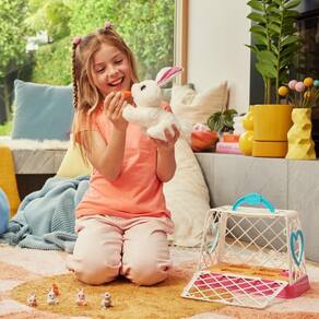 Ela vem com um acessório cenoura para você alimentar, além de uma gaiola prática para armazenar e levar sua coelha e bebês para todas as aventuras. Essa pelúcia interativa vai conquistar o coração de todos com seus sons realistas e carinho.