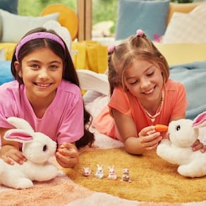 Prepare-se para uma diversão saltitante com a pelúcia Mamãe Coelha Pets Alive Mama Bunny & Baby Surprise! Com orelhas caídas, cauda fofinha e mais de 10 sons encantadores, essa adorável mamãe coelha traz uma surpresa: quantos bebês coelhos você vai encontrar? Serão 2, 3 ou 4?