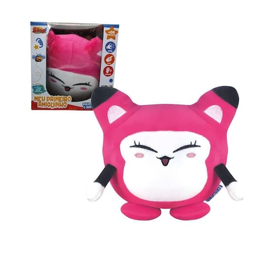 Detalhes do Amiguinho Rosa Pula-Pula: -categoria: Brinquedo de Pelúcia Interativo -cor: Rosa Vibrante -funções: Treme, Pula, Ri, Grava e Repete Falas -materiais Suaves ao Toque -indicado para Crianças a partir de 6 meses -marca: Zoop Toys