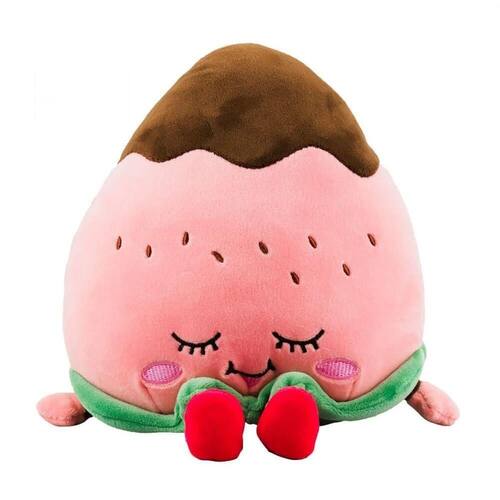 Pelúcia Morango Com Chocolate Rosto Feliz Fofo 20cm Pelúcia no formato de um morango na cor rosa coberto de chocolate no topo com 20 cm de altura. Moranguinho de pelúcia tem um rosto de olhos fechados e pezinhos soltos. Material: poliéster; Enchimento: fibra de poliéster; Produto certificado por Órgão acreditado pela CGCRE do INMETRO Ean: 7899806221091