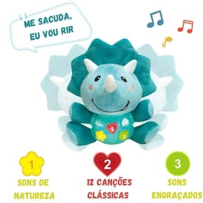 Pelúcia Musical Dino com Luz e Som Divertido - Castela DESCRIÇÃO DO PRODUTO