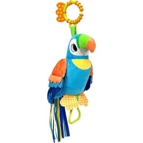 Ela oferece vários estímulos ao bebê: o chocalho aguça a audição, o mordedor massageia as gengivas, a argola e as fitas despertam o tato, e as cores vibrantes exercitam a visão.