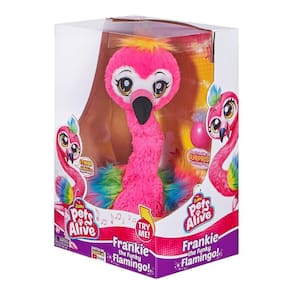 A Pelúcia Pets Alive Frankie Flamingo Dançarino chegou para transformar a brincadeira em um verdadeiro show de diversão! Cheia de personalidade, Frankie dança, gira o pescoço e bate suas asas ao som de 3 músicas animadas, criando momentos cheios de ritmo e risadas para toda a família.