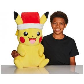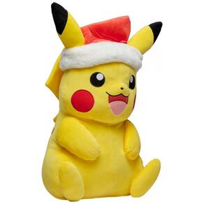 A pelúcia Pokémon Pikachu Holiday Jazwares é um modelo de grande porte com aproximadamente 51 cm de altura, desenvolvida para representar Pikachu em versão temática de fim de ano com gorro de Papai Noel. Produzida em tecido poliéster macio com enchimento sintético, possui estrutura volumosa adequada para apoio em camas, sofás ou superfícies planas.