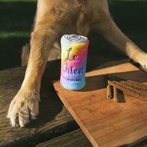 Cada brinquedo em forma de lata oferece horas de diversão que todos os cães desejam. Dê ao seu cachorro uma lata Squeakie hoje! Sem enchimento. As latas Squeakie são brinquedos para cães em forma de lata feitos para se assemelhar às suas bebidas gaseificadas favoritas. Cada lata Squeakie possui detalhes bordados intrincados, um guincho cilíndrico de lata Blaster e um design sem enchimento que minimiza a bagunça.