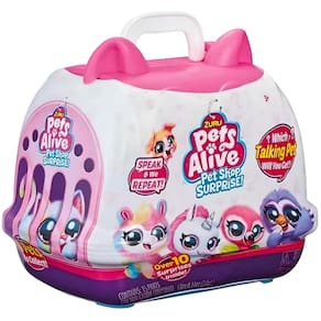 O Pet Shop Surprise de Pets Alive são animais de estimação perfeitos para você adotar. Eles repetem o que você fala e tem sons de animais e mais de 10 surpresas dentro, esses bichinhos são seus novos melhores amigos, ideais para abraçar e interagir! Para descobrir qual animal você adotou, abra o transportador de animais de estimação e, em seguida, comemore a adoção com todas as surpresas de festa dentro, como chapéu de festa DIY, caixa de cupcake e muito mais! São 6 animais de estimação para conhecer: gato, cachorro, flamingo, bicho-preguiça, lhama e unicórnio! Qual animal de estimação será seu novo melhor amigo?