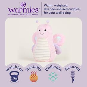 - Bicho de pelúcia para micro-ondas Warmies: Butterfly é um brinquedo de pelúcia confortável, abraçável e adorável para todas as idades que pode ser facilmente aquecido para fornecer horas de calor relaxante ou frio no freezer para um toque refrescante e fresco. Perfeito para conforto e aconchego. 13 polegadas de altura, 1,5 libras.