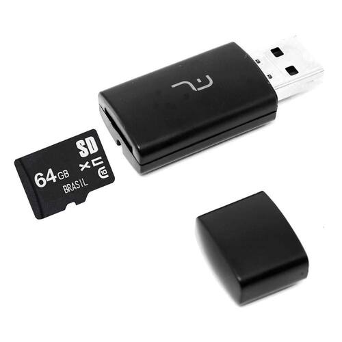 Pen Drive 2 em 1 MC164, feito para armazenar muito mais dos seus arquivos. Ideal para gravação de vídeos em HD e em Full HD. O produto tem 10 anos de garantia e versões classe 10 de 16GB, 32GB e 64GB. Informações técnicas- Conteúdo da embalagem:01 2X1: Leitor USB + Cartão de memória classe 10 64GB EAN: 7899838836416 Garantia: 3 meses Marca: Multilaser Informações complementares- Cor: Preto Marca: Multilaser Ficha técnica - Cor: Preto - Marca: Multilaser Ean: 7899838836416