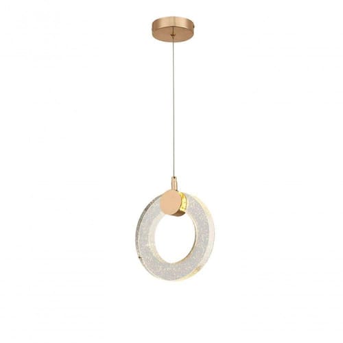Pendente 20Cm ;e Cabo 1,5Mt Metal Dourado e Cristal Led Integrado 6W 3000K Bivolt Sindora ;