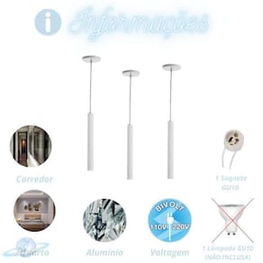 Com o pendente é possível dar uma boa iluminação com caimento e destaque em algum ponto específico que deseje. Indicado para haal de entrada, bancada, lavado , banheiro e muito mais !