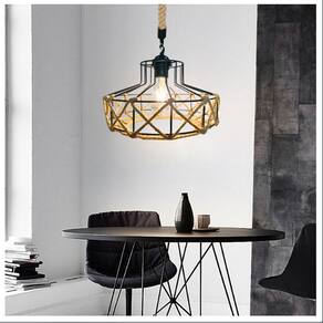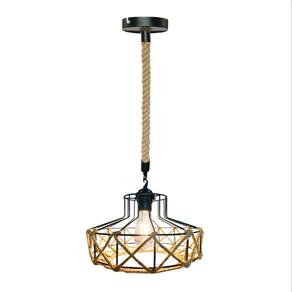 Pendente aramado em metal preto com cordas. Diâmetro 30 cm. Altura 18 cm. Capacidade para 1 lâmpada E27 (não acompanha)