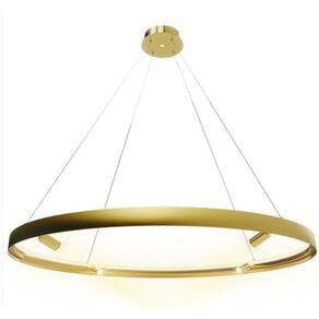 Tensão: Bivolt Potência: 53W Fluxo Luminoso: 2300lm Cor Luz: 3000K Soquete: LED Integrado Cor: dourado Material: Alumínio e Silicone Medidas: 98cm x 4,5cm anel Comprimento do cabo: 3 metros Proteção: IP20 Peso: 3,600 Kg Marca: Não Informado