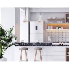 As luminárias pendentes têm um design moderno e elegante, combinando a cor branca com detalhes em cobre, o que confere um toque de sofisticação ao ambiente. Com medidas de 15x18cm, elas possuem o tamanho ideal para se destacarem na decoração, sem ocupar muito espaço.