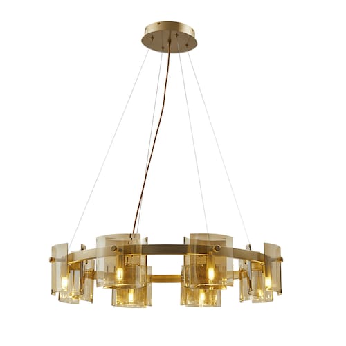 Cód: 2536Pendente Bouze Cin Dourado 80cm 8G9Soquete: 8*G9 (Lâmpadas não inclusas)Potência máx: 40WMaterial: Metal e VidroCor: Dourado e âmbar Comprimento do cabo: 300cmLargura Total: 80cmCanopla: Ø20cm