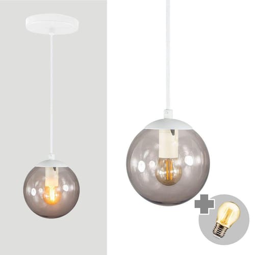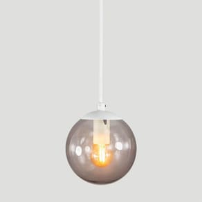 Inspirado no Design Vintage o pendente Globo transmite uma decoração sofisticada e dá um toque divertido ao espaço. Seu design minimalista com globo de vidro tira qualquer sala da mesmice. Uma peça diferenciada e muito elegante que fará toda a diferença no seu ambiente. Ideal para iluminações de centro de mesa, balcões, mesa de jogos entre outros. Descrição Técnica:- Modelo: GLOBO 14cm- Acabamento do Vidro: FUMÊ- Acabamento da Base: BRANCO- Quantidade de soquetes: 1- Material: Vidro e Alumínio- Tamanho do Globo (LxAxP): 14cm x 14cm x 14cm - Cabo Revestido em tecido: 1m (regulável)- Soquete: E27- Bivolt: Sim- Canopla: Em metal com regulador